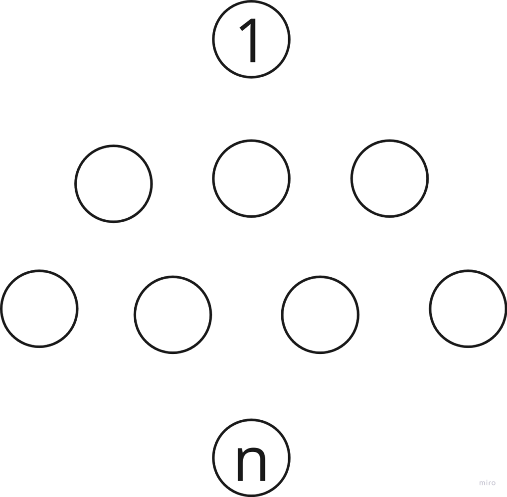 - The graph is numbered, where the indices of the previous $i-cur$ vertices have already been determined, and the index of the vertex $n$ has also been determined. So choose $cur$ vertices among $n-(i-cur)-1$ vertices: $\binom{n-i+cur-1}{cur}$. The transition of the last level is an exception, because the vertex $n$ is also included, so the calculation formula of the last level is $\binom{n-i+cur}{cur}$